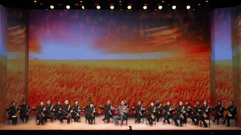 晚会最后一个节目是北京京剧院乐队集体呈现的京胡协奏曲《万马奔腾》,剧院老、中、青三代共23位琴师同台操琴,京剧弦乐的雅致气韵与京剧打击乐的激越节奏相得益彰,老、中、青三代琴音交织共鸣、气吞山河,用音乐绘就一幅薪火相传、奔腾不息的壮丽画卷。